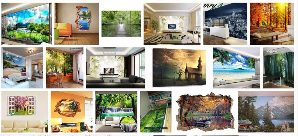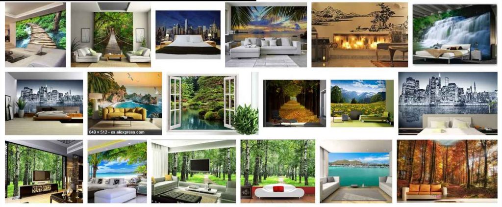 Las fotos que aparecen a continuación son parte de los resultados de búsqueda en Google en relación a murales para paredes en vinilo. Como puede ver, hay infinidad de opciones. Consúltenos sobre este servicio.